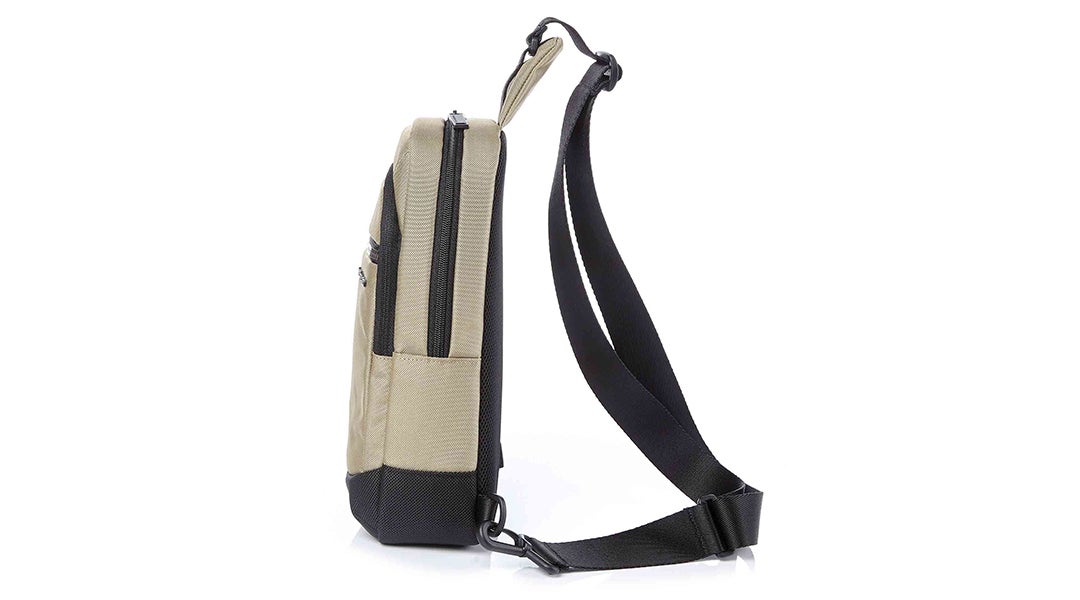 1. 異材質拼接設計,增添斜肩包休閒氛圍。