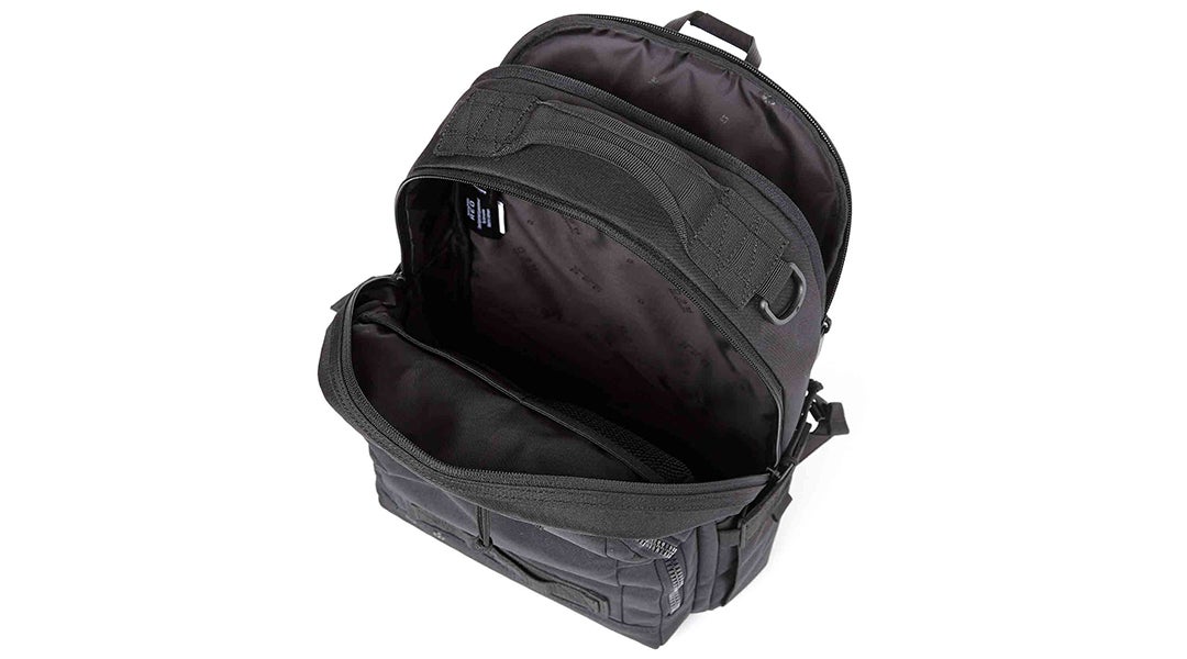 2. 主隔間雙向拉鍊設計,內含多功能收納:1個拉鍊袋、1個網眼插袋、1個內附彈性織帶掛環的插袋。