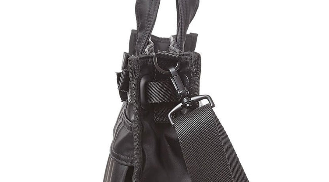 5. 飛機安全帶造型可拆式肩背帶,配備可 360 度旋轉的旋轉鉤環。。